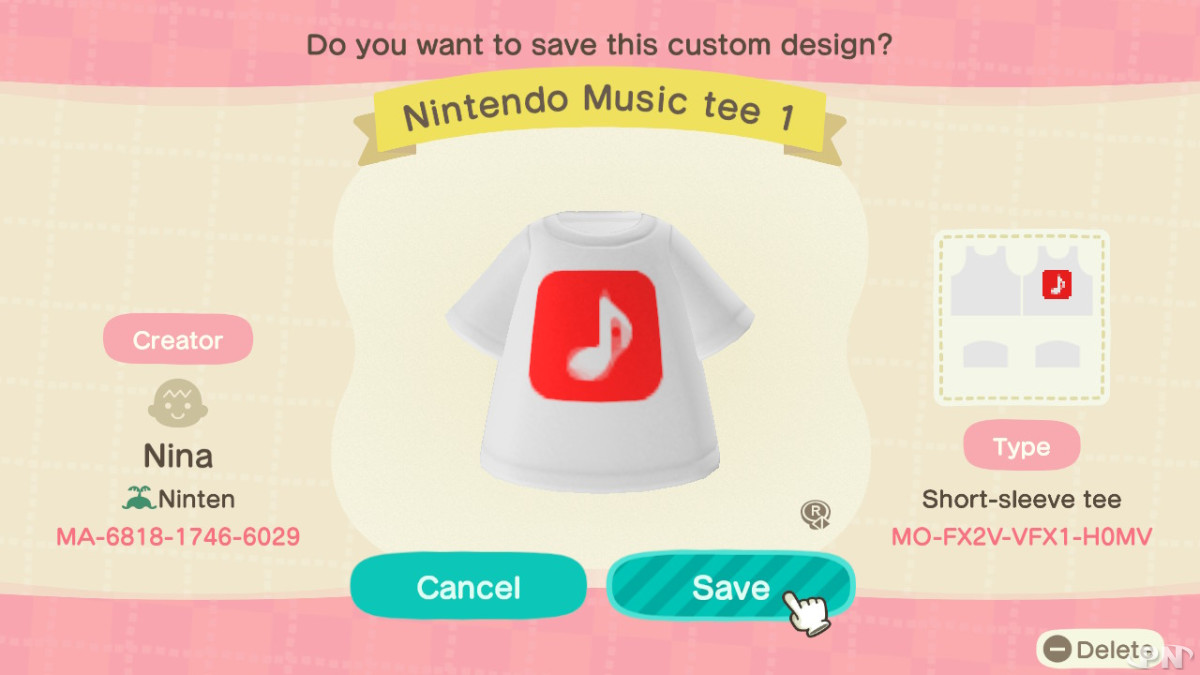 2 nouveaux motifs de designs personnalisés Nintendo Music dans Animal Crossing: New Horizons