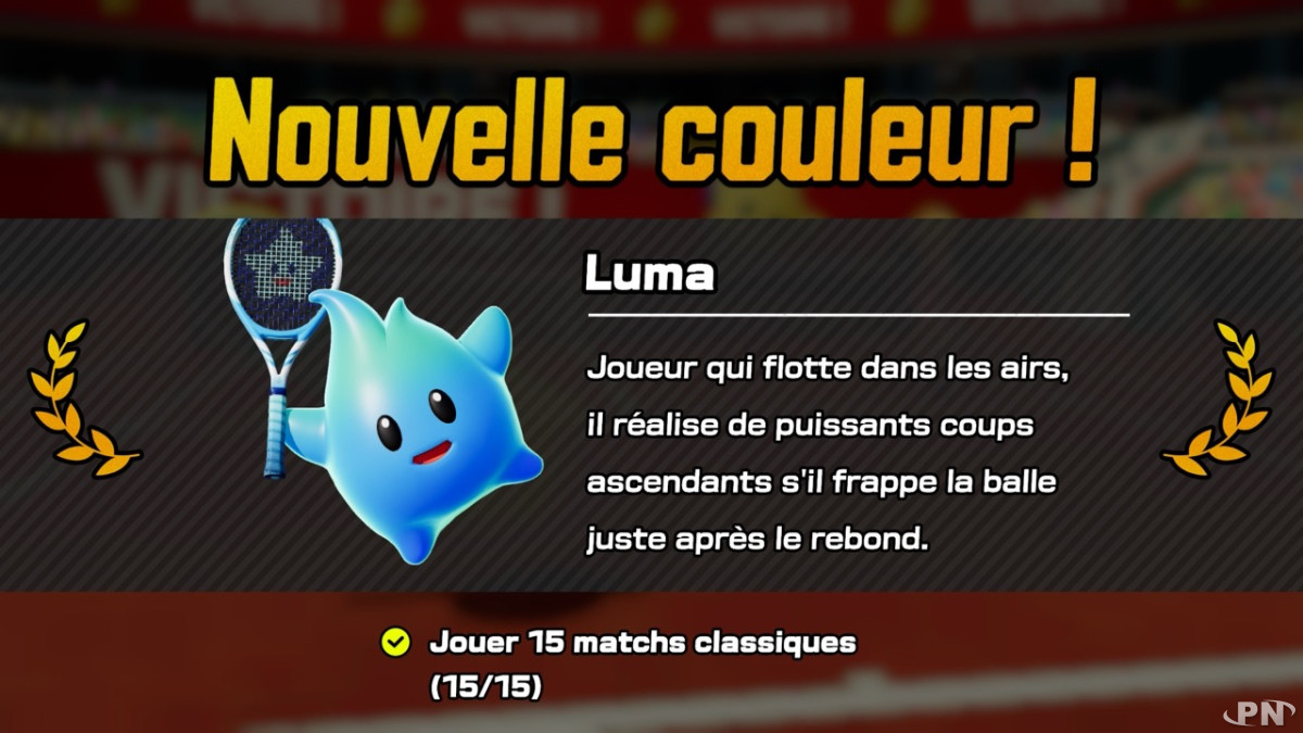Enfin, en plus des personnages, plusieurs variations de couleurs sont proposées pour Luma, Maskass, Koopa, Yoshi et Paratroopa. Là encore, il faudra accumuler les matchs ou viser des rangs élevés dans les défis.Luma :