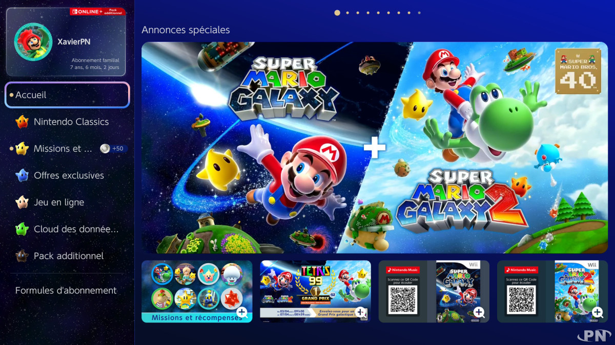 On profite de cette actualité pour signaler que l'application Nintendo Switch Online a changé ses couleurs à l'occasion de la sortie en salles de Super Mario Galaxy le Film, et on trouve que le résultat est visuellement assez intéressant :