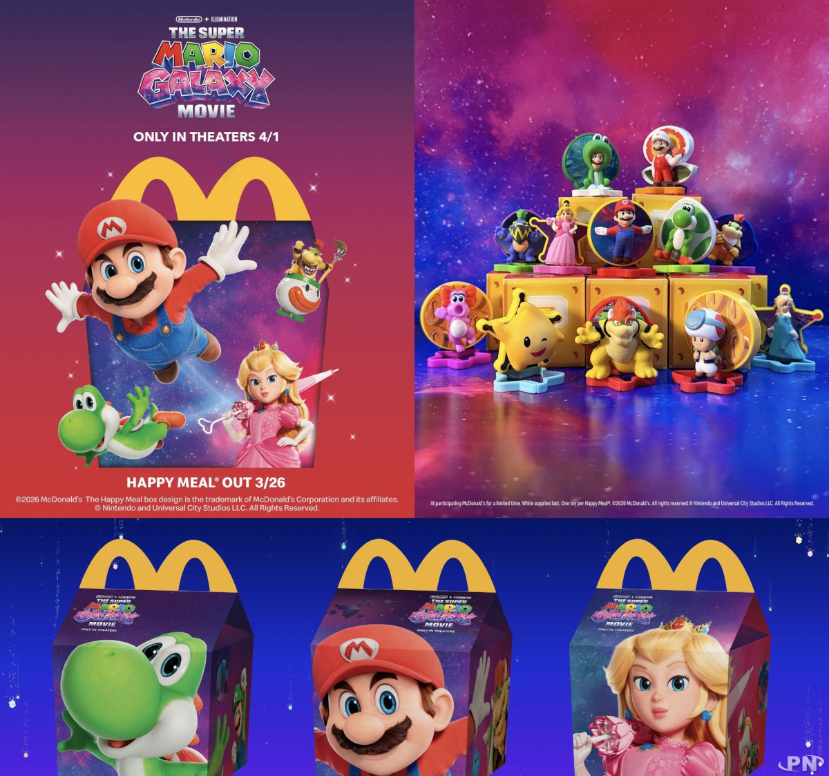 La campagne publicitaire autour de la sortie du film Super Mario Galaxy se poursuit et aujourd’hui elle atterrit au Mc Donalds. Des jouets exclusifs, des sauces champignons, on vous dit tout dans cet article !