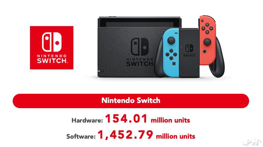 La Nintendo Switch originelle n'est pas en reste et culmine maintenant à 150,01 millions d'exemplaire. La console de Nintendo arrive désormais au niveau des ventes de la console N°1 de Nintendo : la Nintendo DS (150,02 millions) et se rapproche doucement des ventes de la Playstation 2 (160 millions).