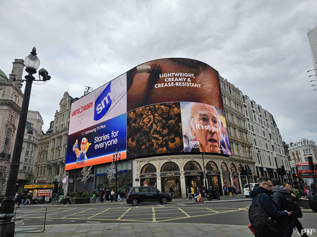 Un petit détour par Picadilly circus en cours de rénovation donc nous n'allons pas attarder dessus. On notera tout de même la courte séquence dédiée à Samsung affichant fièrement Sacha et son fidèle Pikachu !