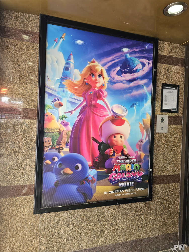 Quelle beauté, on se prend à rêver de regarder le film sur un écran de cette taille. Les affiches publicitaires du cinéma ne sont pas en reste et mettent en valeur Mario, la princesse Peach et l'adorable Toad. Les habitués auront reconnu ces affiches puisqu'elles sont identiques à celle de la campagne en cours sur les arrêts de bus parisiens.