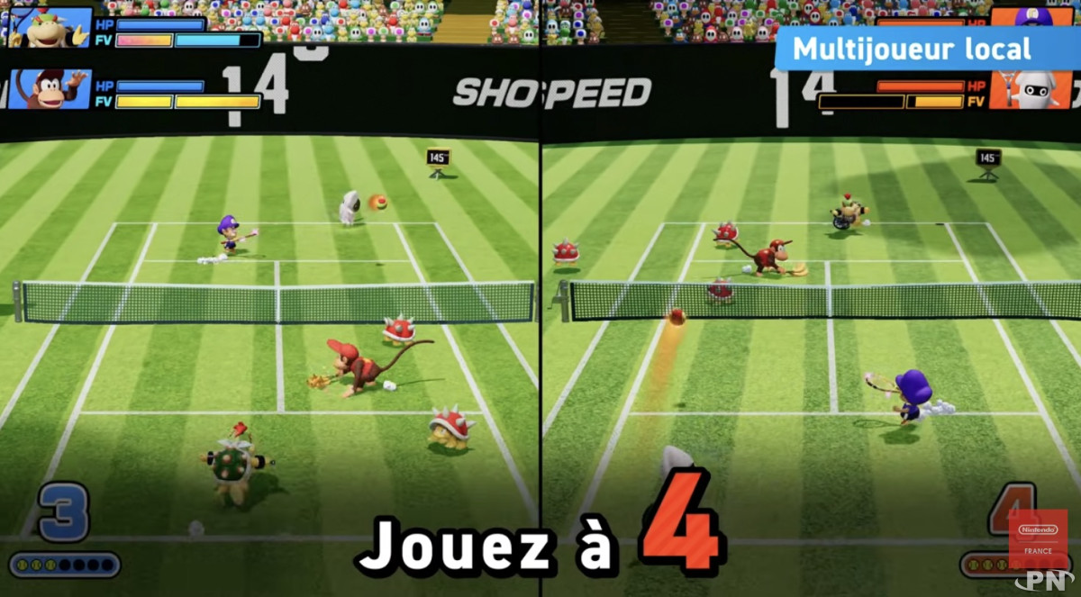 Mario Tennis Fever proposera 38 personnages jouables, avec notamment l’arrivée de Goomba, Carottin et Bébé Waluigi présentés dans la vidéo. Chaque joueur est libre d’opter pour une raquette frénétique ou de rester sur des raquettes standard, pour une approche plus classique du tennis.Côté modes de jeu, le contenu s’annonce particulièrement généreux. Le mode Tournoi sera commenté par la Fleur Cancan, tandis que les Tours des Épreuves proposeront une progression basée sur des défis successifs. D’autres modes viennent casser les règles traditionnelles, comme le Tennis flipper, le Tennis forestier avec des plantes piranha à nourrir, ou encore le Tennis des prodiges, qui bouleverse les matches grâce aux Fleurs Prodiges.