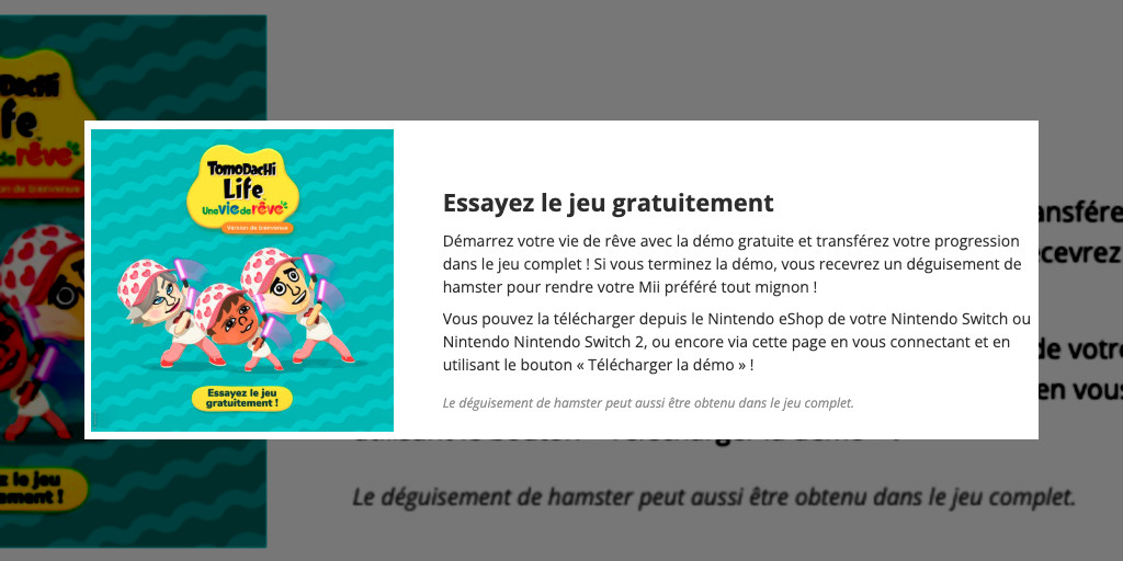Nintendo propose une démo gratuite de Tomodachi Life: Living the Dream sur Switch, avec progression transférable et bonus à débloquer avant la sortie.