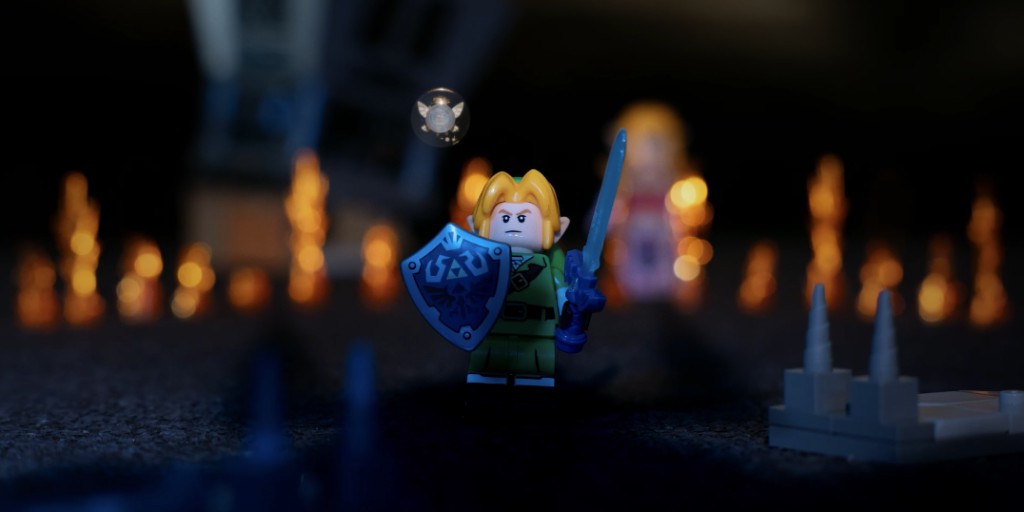 Dans cette séquence de 12 secondes, on aperçoit Link (au premier plan, avec sa master sword) et la princesse Zelda en fond. Une lumière menaçante se projette au sol, comme si une silhouette monstrueuse surgissait des ruines.« Sais-tu bien qui je suis ?! » #LEGO #Zelda pic.twitter.com/GYUIAYe9pm