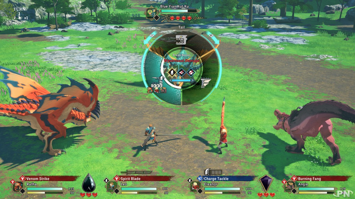 Lorsqu'un ennemi va attaquer, il est libre de choisir le type d'attaque qu'il va lancer et quelle sera sa cible entre vous, votre Monstie ou d’éventuels autres partenaires. Mais selon le monstre et sa posture, il peut être possible de deviner quelle sera potentiellement sa prochaine approche, tout en gardant à l'esprit que le jeu ne trahit jamais ses secrets, ce serait trop facile. En l’emportant sur l’attaque ennemie lorsque celui-ci vous cible, vous lui infligez plus de dégâts et la jauge d’amitié avec votre Monstie progresse, vous permettant d’infliger une attaque double. Jusqu’ici, le système de combat est donc semblable à celui des épisodes précédents. Vous pourrez d’ailleurs toujours viser une zone particulière de l’ennemi et aussi collecter des matériaux.