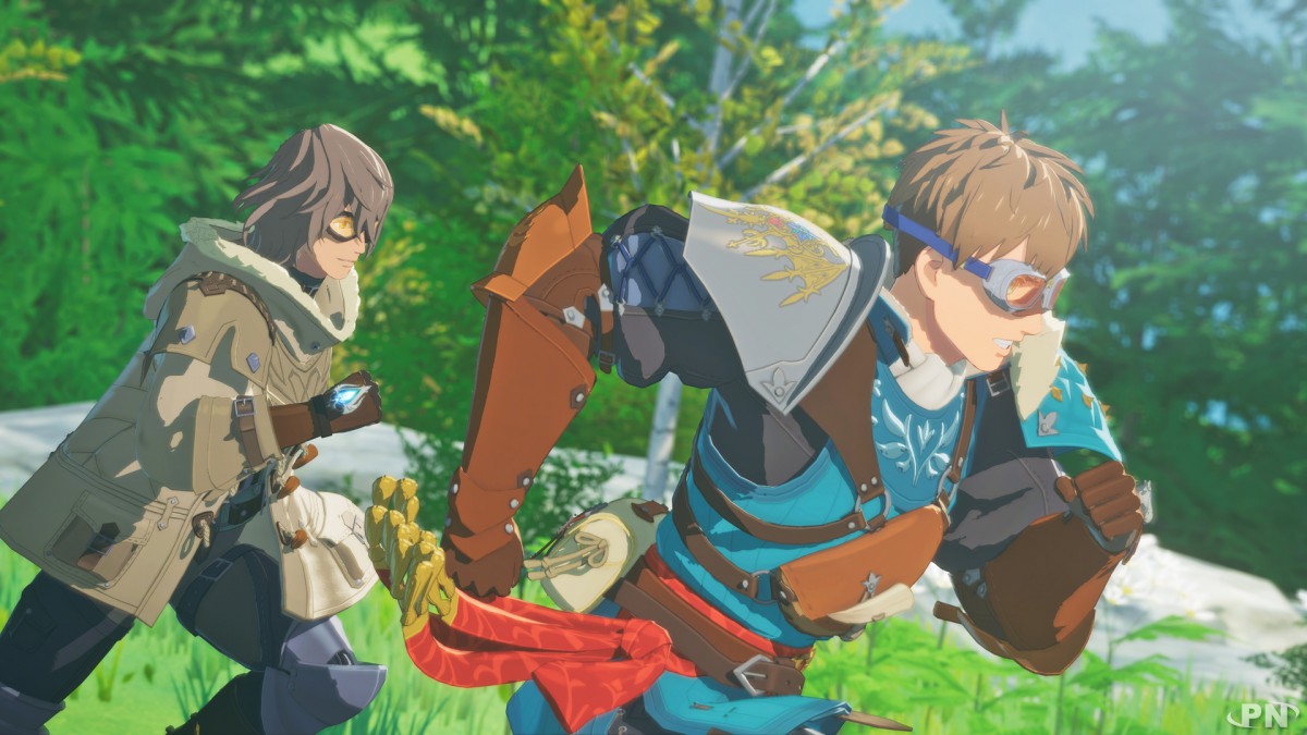 Les changements entre les Monsties de notre équipe sont plus rapides que jamais et les interactions avec l’environnement, comme avec l’attaque de mêlée ou le souffle brûlant, se multiplient. L’inspiration des terres d’Hyrule parcourues par Link dans The Legend of Zelda n’y est certainement pas étrangère, allant des paysages plus ouverts, à la possibilité de placer des repères lumineux au loin en examinant les horizons, en passant par la tenue bleutée du protagoniste qui semble un pastiche de la tunique hylienne de prodige.
