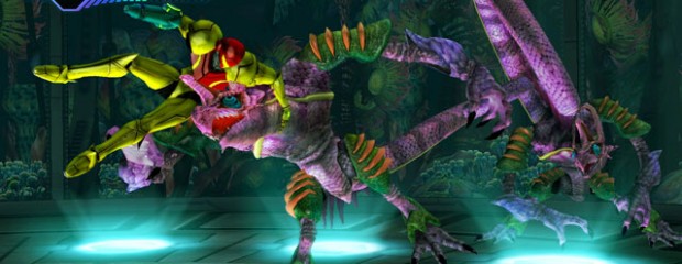 Tout d’abord, exit le FPS que nous connaissions puisque la majeure partie du jeu se déroule en vue à la troisième personne vu de côté. La plupart du temps, Samus se déplace dans un espace en 3D et l’angle de la caméra est peu mobile, se contentant de suivre de loin le personnage. Lors de certains passages cependant, la caméra vient se placer derrière l’épaule pour une mise en scène plus appuyée. Au cours de ces assages à la troisième personne, la maniabilité est bonne et les phases de plate forme (moyennement nombreuses) ne posent aucun problème ; les enchainements de sauts s’effectuent de manière fluide. Les phases de combat peuvent cependant légèrement dérouter puisque la visée est entièrement automatique, il suffit de tirer quand Samus est à peu près tournée en direction d’un ennemi pour le toucher à coup sûr ! Ces combats totalement assistés pourront peut-être rebuter les hardcore gamers mais la difficulté réside dans le fait qu’il faille rester continuellement en mouvement afin d’échapper aux vagues d’ennemis.Cependant il subsiste quelques traces de FPS dans ce Métroid puisqu’en dirigeant sa wiimote vers l’écran, on bascule instantanément en vue à la première personne. Cela permet plusieurs choses. D’abord cette vue permet d’examiner les objets et de les scanner pour glaner des informations. Elle permet également d’ouvrir certaines portes qu’il faudra locker avant de tirer dessus. Vous l’aurez deviné, cette vue a également son importance lors des combats puisqu’elle permet de locker les ennemis avant de concentrer son tir dessus ou de leur envoyer quelques missiles. Particulièrement utile pour viser les points faibles du boss de fin du niveau de la démo. A noter que cette vue ne permet pas de continuer à se déplacer, ce qui introduit des sortes de temps mort dans les combats mais rien de désagréable à cela, les transitions entre troisième et première personne étant très fluides.