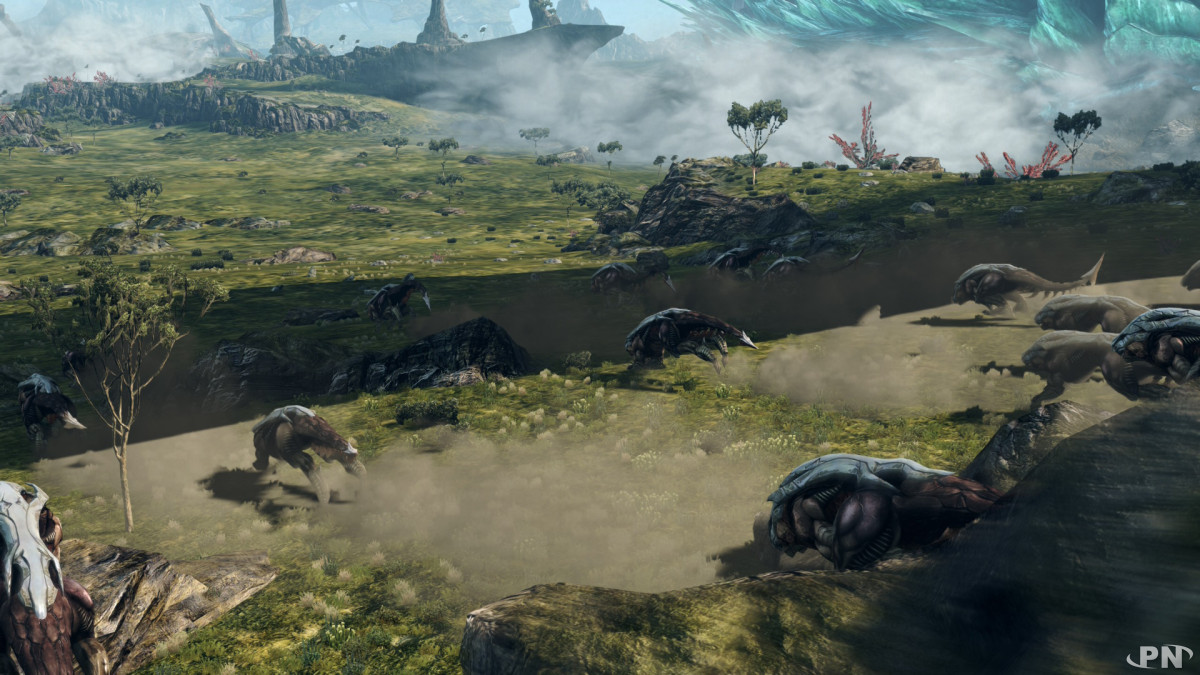Nous n’allons pas nous y attarder trop longtemps, il vous suffit pour cela de lire notre test complet sur le jeu. Xenoblade Chronicles X relate l’exil d’humains qui ont survécu à la destruction de la Terre et qui ont échoué sur une planète inconnue. Cette dernière est rebaptisée Mira et nous pouvons l’explorer avec notre avatar de long en large (et même en hauteur) au cours d’une extraordinaire épopée.Xenoblade Chronicles X a été particulièrement apprécié par sa qualité narrative, son univers vaste mais aussi sa direction artistique somptueuse. Mira est une planète que l’on admire, que l’on observe avec sa faune et sa flore gigantesques. Nous avons aussi le droit à beaucoup de combats intenses en temps réel face à diverses créatures hostiles.