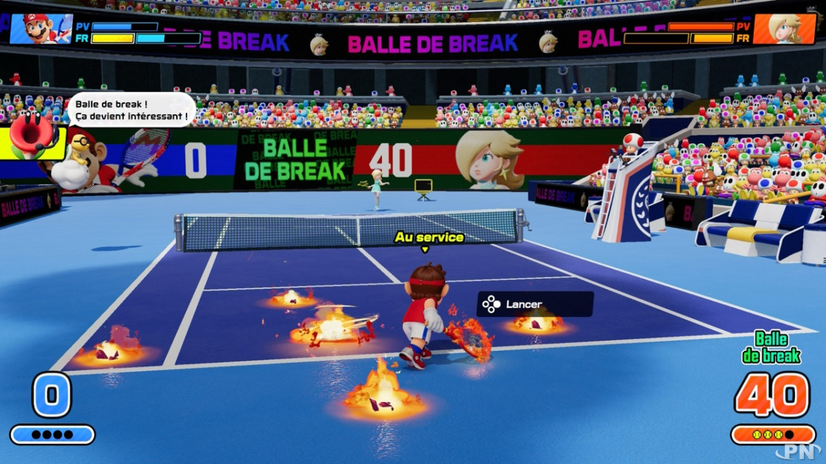 La bande-annonce diffusée au début du mois de janvier est en tout cas de bon augure : du pur tennis arcade, avec du grand spectacle grâce aux raquettes frénétiques, et un héritage des jeux récents comme les commentaires de la Fleur Cancan et mêne un mini-jeu qui implique les Fleurs Prodige. Rendez-vous était donc pris sur le court pour en découdre avec ses différents modes...