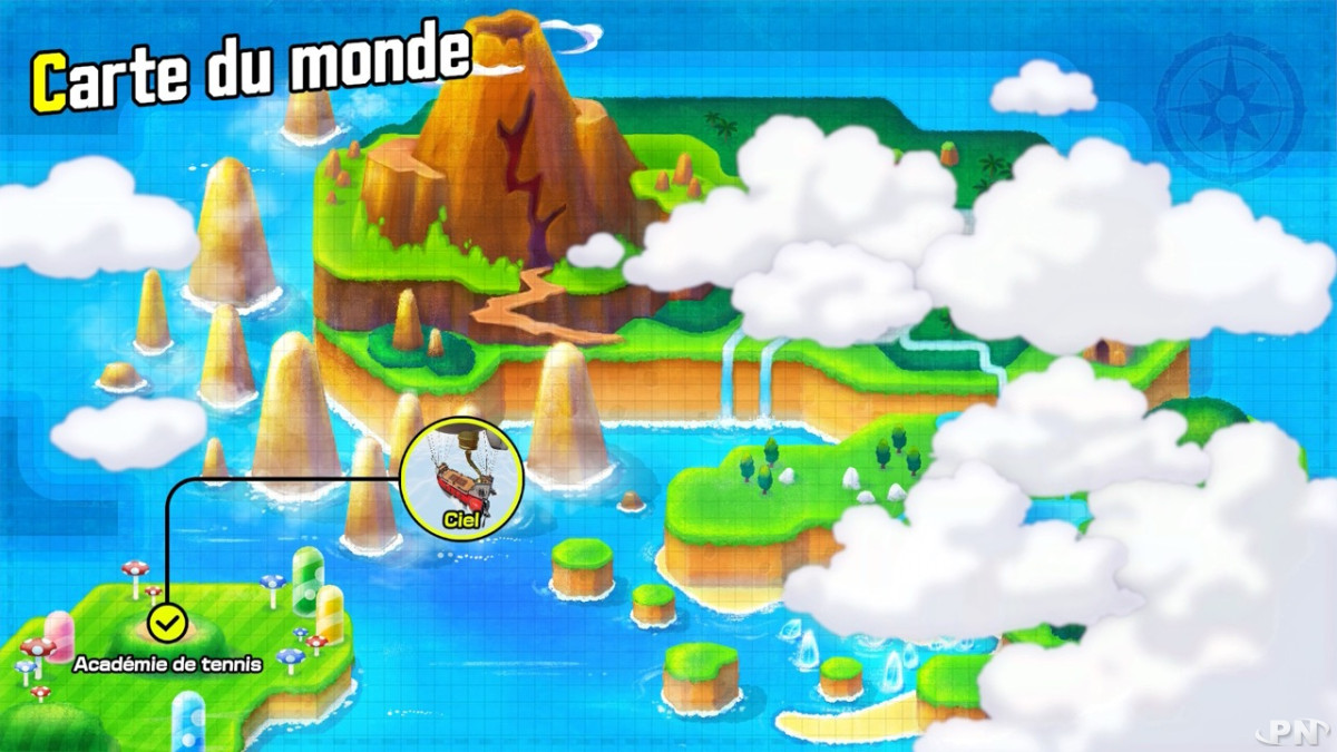 Une Carte du monde apparait alors et nous propose de partir à la recherche d'une solution pour rendre à tout ce petit monde sa taille adulte... On alterne certes encore les phases de déambulation parfois ridicules dans les niveaux et les phases de jeu, mais il faut reconnaître que certains défis sont intéressants, avec des boss bien pensés pour mettre à rude épreuve notre maîtrise des coups de Mario Tennis. Les mécaniques, en tout cas, sont intéressantes et le tout est très agréable à regarder.