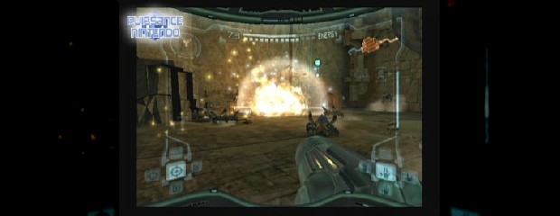 L'annonce du développement d'un Metroïd sur Gamecube fit grand bruit : les premières images montraient en effet un jeu qui avait tout l'air d'un FPS (first person shooter). Le point de vue était désormais à la première personne, depuis la visière de Samus, et non plus à la 3ème personne comme dans tout bon jeu 2D. Avec le passage à la 3ème dimension de tous les personnages Nintendo du temps de la Nintendo 64, il fallait s'y attendre. De jeu de plateformes subtil Metroïd allait-il devenir un bête jeu de tir ? C'était sans compter sur le savoir faire de Nintendo et surtout des jeunes talent de Retro Studio Californie qui travaillaient d'arrache-pied pour respecter et transcender l'univers Metroïd...Gameplay aux petits oignonsLa superbe cinématique de départ nous montre Samus arriver sur une plateforme orbitale abandonnée. Son radar lui a indiqué des signes de vie et elle décide d'inspecter les lieux. Cette première séquence sert de dictaticiel. Le gameplay, très riche, déconcerte au début mais on se rend vite compte que parfaitement maîtrisé il fait merveille. La maniabilité innovante est d'ailleurs l'un de gros points forts de ce titre ! Avec R on peut regarder où bon nous semble et locker une cible avec le bouton L. Une fois la cible verrouillée on peut se déplacer tout autour d'elle : le système ingénieux des Zelda 64 est ainsi utilisé en vue subjective ! Encore plus impressionnant, la possibilité de sauter est tout bonnement jouissive. Lors d'un saut, la vision se baisse un peu pour que l'on puisse voir où l'on atterri. C'est tout simple, intuitif et ça aide beaucoup, et heureusement car le côté plateformes de Metroïd a été conservé et sauter d'un étage à l'autre se révèlera indispensable.