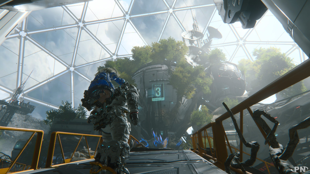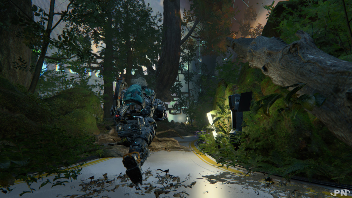 Enfin, ne vous attendez pas à une révolution en matière de level design. L’intérêt de Pragmata réside avant tout dans ses combats et son univers. Le reste est assez classique : des phases d’exploration dans les différents biomes du Berceau, souvent entravées par des passerelles délabrées et autres portes fermées qu'il conviendra de déverrouiller en résolvant quelques énigmes, et un soupçon de plateforme. On sent que Capcom a mis l’accent sur les affrontements, et même si l’univers est agréable à parcourir, l’intérêt principal se situe ailleurs. Notez toutefois que le titre propose une bonne durée de vie et une belle rejouabilité : mon compteur in-game affichait 12 heures une fois l’histoire principale terminée, soit environ une quinzaine d’heures réelles. Et pourtant, je suis loin d’avoir tout vu. Entre les zones rouges proposant des défis de combat corsés, les collectibles (figurines à trouver et détruire, costumes pour Hugh et Diana, données et modèles 3D des ennemis), les défis du Refuge, le New Game +, un niveau de difficulté supplémentaire et même un contenu scénaristique additionnel intitulé Signal Perdu, Pragmata regorge de contenu. L’aventure principale ne s’éternise pas, mais le jeu récompense largement les joueurs curieux.