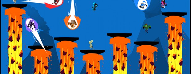 Si vous êtes plusieurs et que vos amis sont plutôt d’humeur belliqueuse, quelques modes dédiés aux joutes devraient vous donner l’occasion de les calmer. Le premier d’entre eux, les courses, reprend le concept de base du jeu : atteindre l’objectif le plus vite possible. Mais cette fois il ne s’agit plus simplement de rejoindre l’arrivée, mais d’y parvenir en premier. Et au milieu de la profusion de bourre-pif que ça engendre, c’est déjà une petite victoire de ne pas flancher en cours de route. Pour varier les plaisirs, il y a également les combats en arène. Ici le but est d’être le dernier en vie, dans une grande variété de décors qui ne manquent pas d’ingéniosité pour nous offrir une mort rapide et ridicule. Arène se rétrécissant doucement, éléments disparaissant, plateformes se rapprochant de la lave à chaque fois qu’on passe dessus, parois destructibles…