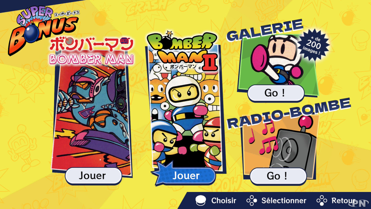 Dès son écran d'accueil, le jeu met à fond l'accent de la nostalgie avec une présentation soignée de chaque épisode : boîte d'origine, notice, galerie d'illustrations, et une Radio Bombe pour écouter les musiques originales et créer ses propres playlists.