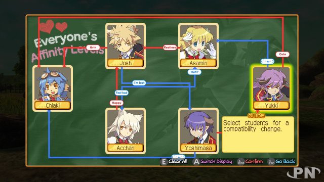 Class of Heroes 3 a un système de lien affectif, qui vient un peu balancer le creux des personnages présents dans l’école. Dans votre équipe toute fraîche, les personnages ne se connaissent pas encore, mais au fur et à mesure des missions, ils vont tisser des liens d’amitié les uns avec les autres.