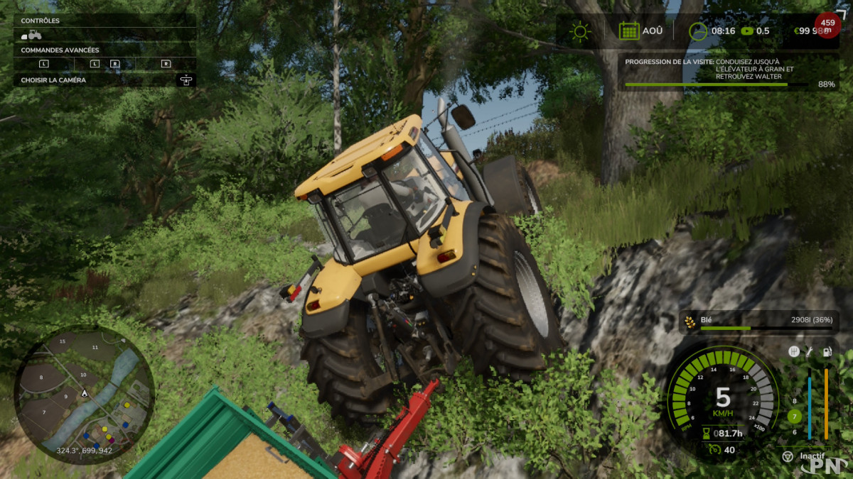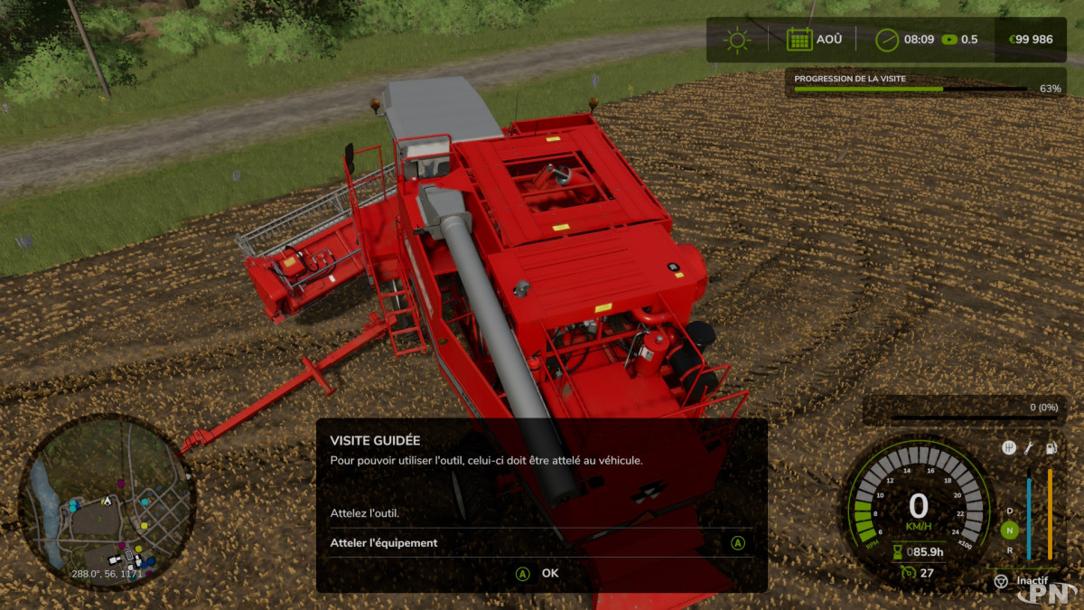 Car si le jeu vous apprend à enlever les outils, à les raccrocher, à utiliser les flèches pour changer de véhicules sans avoir à déplacer votre personnage… c’est à peu près tout. La gestion, la carte et les points d’intérêt, la boutique et la possibilité d’acheter de nouveaux véhicules ou cultures… Tout ça il faudra vous débrouiller pour le comprendre seul et le trouver.
