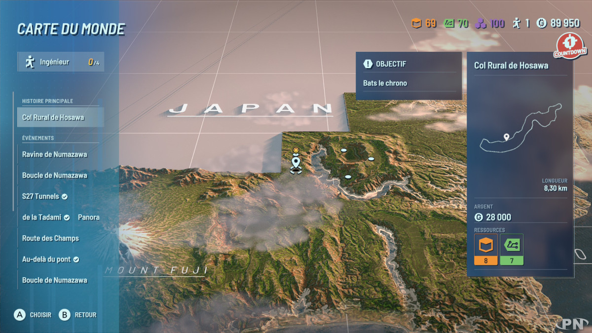 Les graphismes de ces espaces sont plutôt réussis grâce à une jolie clarté mais ne suffisent pas à contrebalancer les effets visuels des courses qui nous ont quant à eux vraiment déçu. En effet sur les routes de Provence comme dans les vallées des montagnes japonaises, il n’est pas rare que la course se tienne à une heure avancée de la journée, pour ne pas dire au crépuscule ou bien à l’aube, ce qui appauvrit considérablement la visibilité générale, en dépit des phares de notre véhicule qui s’allument automatiquement. Pas très agréable de conduire dans une sorte de brouillard.