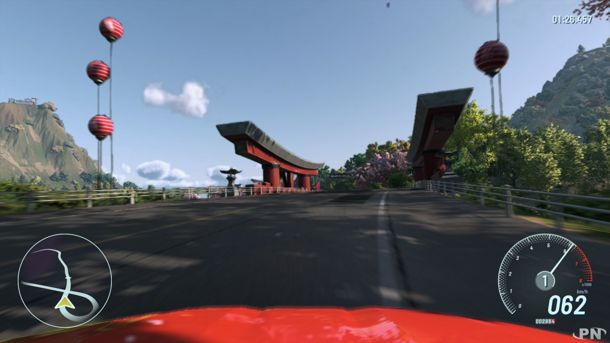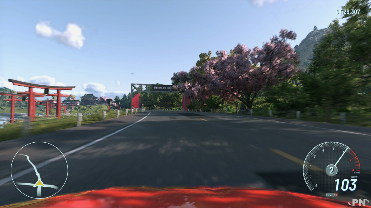 Près de huit ans après la dernière sortie de la licence de course Gear.Club chez Nintendo (retrouvez notre test du premier volet et les infos sur le deuxième volet qui avait bénéficié avec bonheur de DLC embellissant l'expérience), la franchise revient avec une carrosserie flambant neuve taillée sur mesure pour la Nintendo Switch 2. Les possibilités techniques de la dernière des consoles Nintendo laissaient présager un jeu visuellement impressionnant et des courses spectaculaires mais la promesse est-elle tenue ?Difficile pour commencer de nier l’originalité du parti pris qui nous emmène à la fois entre les routes du sud de la France et celles du Japon. Les paysages que l’on traverse à toute allure se ressemblent rarement, et pour qui apprécie le grand air et de savourer des points de vue bien travaillés, avec de vrais efforts mis sur la topographie de cols, de falaises, de criques lumineuses et d’étangs brumeux, le jeu vaut le détour. Les routes sont en effet sinueuses comme attendues dans ces paysages parfois escarpés et influencent de facto le gameplay, avec à la clef beaucoup de virages et une attention de tous les instants pour ne pas finir dans le décor.