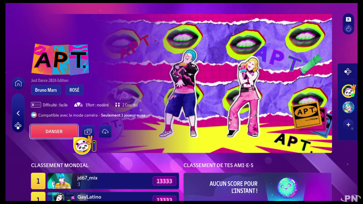 Un autre sujet que nous avions déjà évoqué l'année dernière, c'est la gestion du joueur 2. Il est regrettable qu'il soit nécessaire de lui adjoindre un compte Ubisoft afin de mémoriser ses propres scores. Vous le comprenez, l'interface n'a pas fait que des heureux, et le fait d'avoir déplacé les playlists personnelles dans un menu "Activités" a fait pester l'un d'entre nous assez longtemps vu le temps que l’intéressé a mis pour retrouver les playlist créées avec passion.