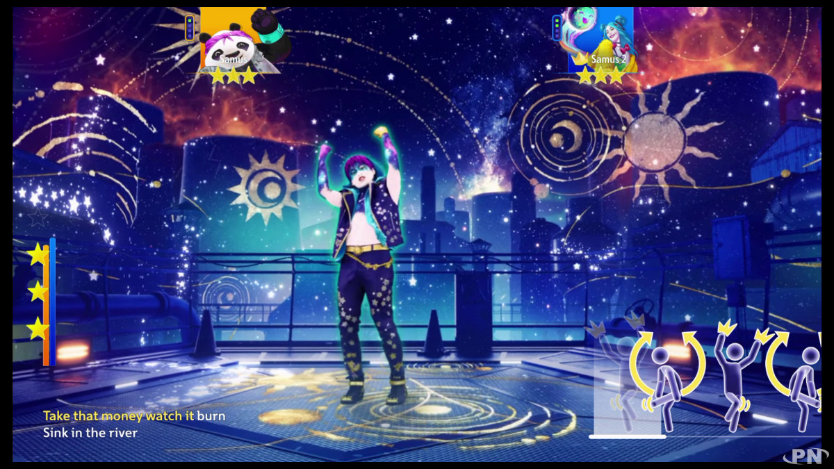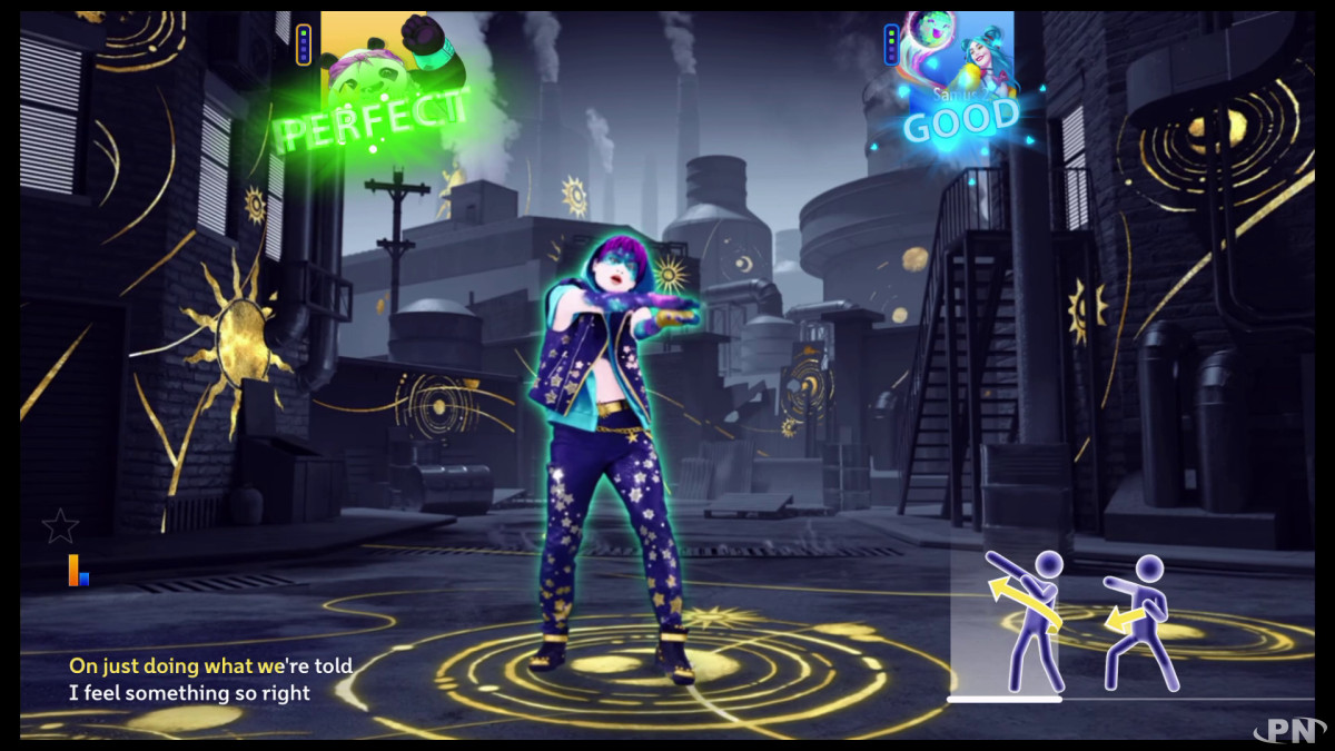 Au sujet des chansons, qu’on se le dise : Ubisoft ne vous prend pas pour des pigeons. Avec le temps, celles-ci ont pris de plus en plus de couleurs, d’animation et d’ambiance. Ainsi, chaque chanson a un univers qui lui est propre, et un fond animé dédié. Je pourrais aussi dire que chaque chorégraphie est dansée par un personnage qui lui est propre, mais c’est légèrement faux car dans Just Dance, il y a une histoire en tâche de fond et certains personnages, à l’image du Voyageur, vous narrent en réalité une aventure, mais c’est un sujet dédié aux connaisseurs de la saga.