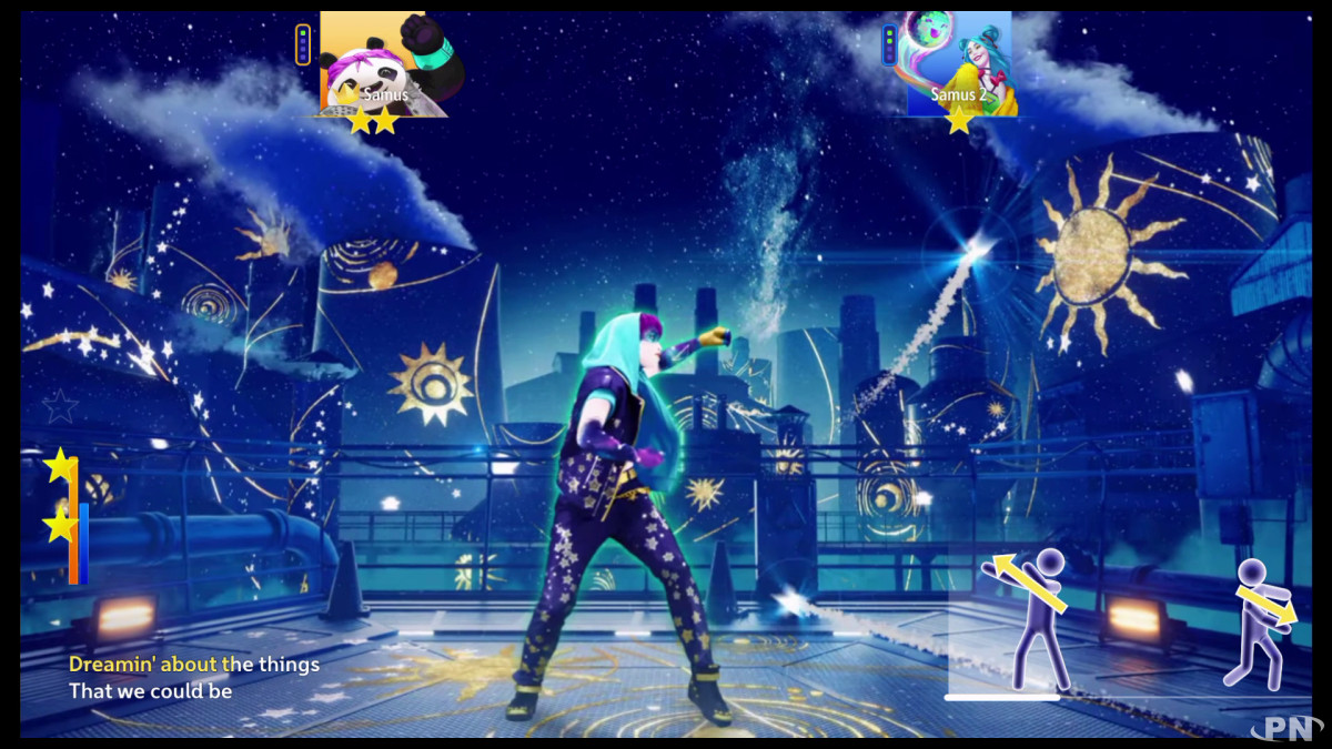 En termes de fonctionnalités, si on peut s’exprimer ainsi, il y en a deux nouvelles. La première, je l’ai rapidement évoquée en début d’article : l’utilisation de votre Smartphone pour jouer avec le mode caméra. Sur les éditions précédentes, il était possible d’utiliser son téléphone, avec une appli dédiée, comme une manette. Désormais, il peut aussi être utilisé en mode caméra pour détecter tous vos mouvements. La seconde nouveauté est le Mode Party. Celui-ci vous propose de faire des équipes et de s’affronter dans des battles de danses sur des chansons raccourcies et sur un rythme effréné.